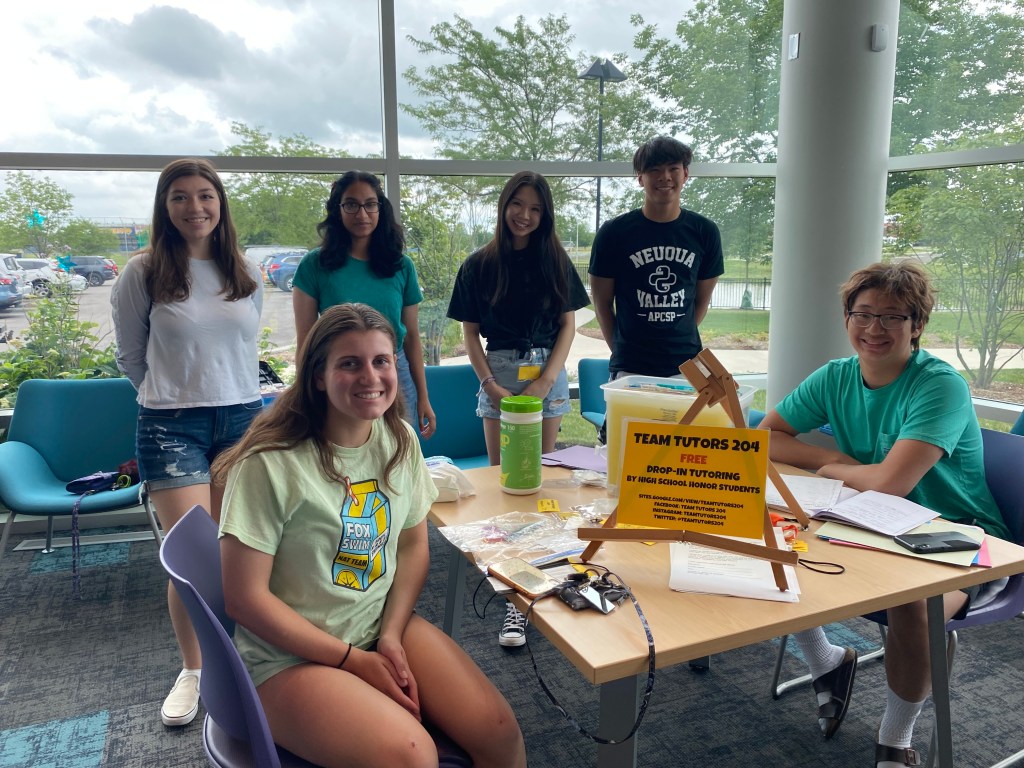 Team Tutors 204 (a 501c3 non-profit organization) is a free drop-in tutoring program held at the 95th Street branch of the Naperville Public Library. Honors students at the three District 204 high schools (Waubonsie, Neuqua, and Metea), IMSA, and Benet Academy volunteer to tutor children grades K-8 in all school subjects. Since 2017, we have provided over 3500 hours (and counting) of service to our community through in-person tutoring (and zoom tutoring during the pandemic).